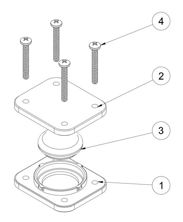 3. AirTag Halterung unter der Aufnahme für das Navigationsgerät montieren. Dazu bei Bedarf die längeren Schrauben (4) nutzen. Bei der Montage der Navi-Aufnahme die Angaben des Herstellers beachten!